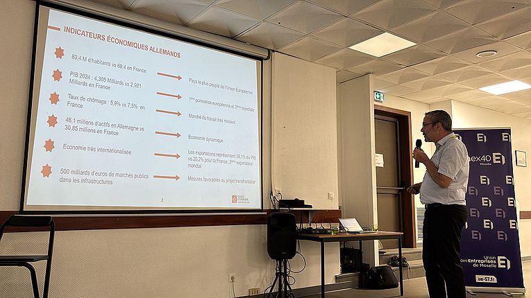 In diesem Ambiente konnten über 40 Teilnehmer – französische Unternehmerinnen und Unternehmer – sich über die wirtschaftliche Zusammenarbeit mit Deutschland informieren. Und auch, wie sie dabei ganz konkret unterstützt werden können: von rechtlicher und wirtschaftlicher Beratung bis hin zu finanziellen Begleitung durch die Sparkassen dies und jenseits der Grenze. In der Podiumsdiskussion konnten wir so die Hinweise dafür geben, auch wenn französische Unternehmen Interesse haben, sich an deutschen Unternehmen zu beteiligen. Ein ganz dringendes Problem, auch vor dem Hintergrund Nachfolgerinnen und Nachfolger für viele deutsche kleine und mittlere Unternehmen zu finden. Aus der Diskussion ergab sich, dass französische Unternehmer sich häufig aufgrund Sprache und ähnlicher Historie gerne nach Luxemburg orientieren. Dass aber der natürlich weitaus größere deutsche Markt für sie auch von Interesse ist. Und zwar ohne vorab perfekt Deutsch lernen zu müssen. Gerade in Lothringen, und im Saarland gibt es häufig zweisprachige Mitarbeiterinnen und Mitarbeiter in den Unternehmen beiderseits der Grenze , die potentielle Investoren sprachlich und kulturell hervorragend unterstützen können. Europa lebt vom deutsch-französischen Motor – und das gilt nicht nur für die Politik, sondern auch für die Wirtschaft. Ein weiteres enges Zusammenrücken, auch in den vorgenannten Feldern ist so einer der zukünftigen Eckpfeiler zum Wohle der Wirtschaft und damit auch der Menschen auf beiden Seiten der Grenze.