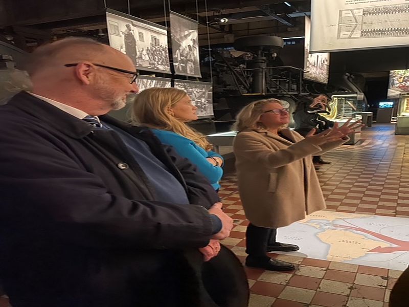 Vorab führte der Direktor des Weltkulturerbes Doktor Ralf Beil Svenja Schulze und mehr als 30 im Entwicklungshilfebereich Aktive verschiedenster Organisationen durch die bemerkenswerte Ausstellung.