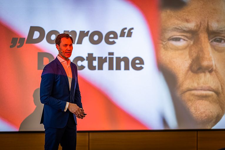 In seinem Vortrag „Donald Trump nach einem Jahr im Amt – Promises Made, Promises Kept?“ analysierte er pointiert und zugleich unterhaltsam die aktuelle politische Lage in den USA. Dabei gewährte er Einblicke hinter die Kulissen Washingtons und ordnete ein, inwiefern politische Entscheidungen bereits umgesetzt wurden und welche Entwicklungen sich abzeichnen.
