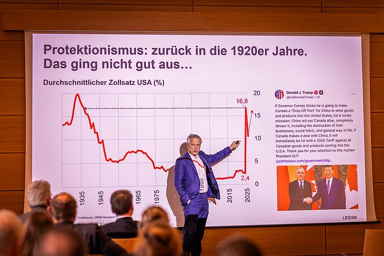 Eine andere Perspektive auf die aktuellen Entwicklungen der Weltwirtschaft nahm Dr. Moritz Krämer, Chefvolkswirt der LBBW und renommierter Wirtschaftsexperte, ein.